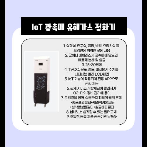 1. 실험실, 연구실, 공장, 병원, 요양시설 등 오염원에 취약한 곳에 사용